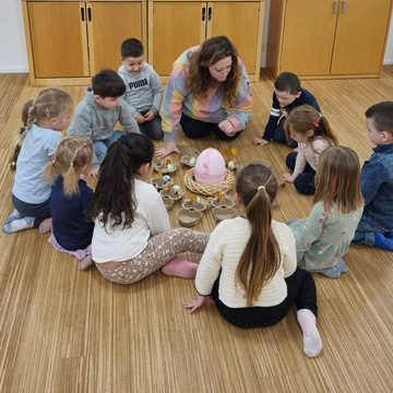 • Die Spielgruppe liebt diese Zeit: Basteln, Singen, Guazli backen und natürlich essen, Geschichten lauschen, im Schnee spielen und die ruhige Stimmung
